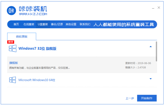 1、首先需要在電腦上下載安裝咔咔裝機軟件后,將u盤插入電腦上,點擊u盤重裝系統。