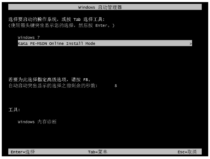 6、當電腦進入啟動管理器的界面,選擇第二項,按回車鍵進入。