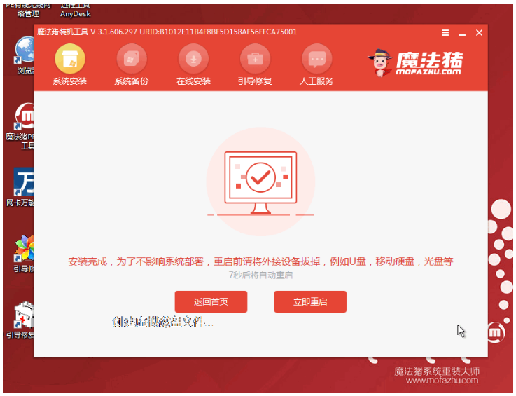 7、我們在安裝完成后,點擊立即重啟電腦。
