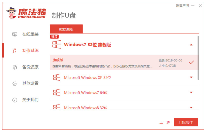 2、選擇我們需要安裝的win7系統,點擊開始制作。
