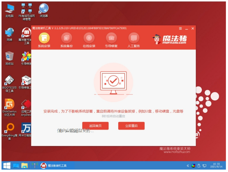 5、裝機軟件將會自動開始安裝,提示安裝完成后立即重啟。