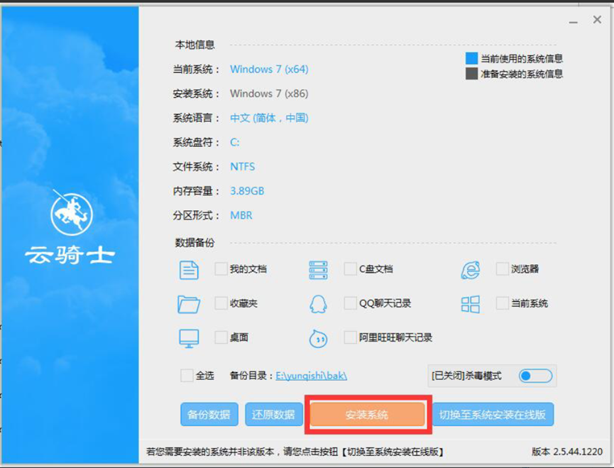 6、接著把我的文檔、收藏夾、桌面上的數據備份下,方便重裝后使用,點擊“安裝系統”按鈕。