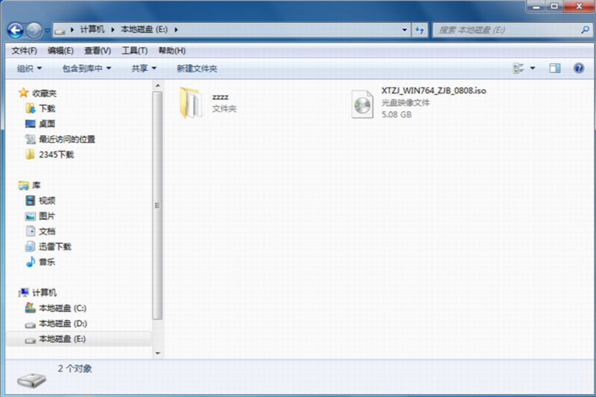 1、首先需要下載Win7系統鏡像“XTZJ_WIN764_ZJB_0808.iso”到本地硬盤上(這里下載在E盤上)。