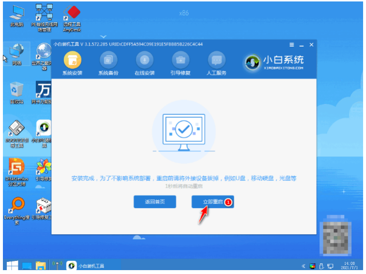 7、提示系統安裝完成之后,點擊立即重啟電腦。