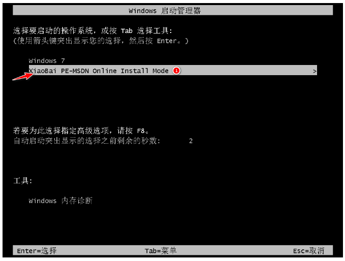 4、重啟電腦直后會進入管理器界面,選擇帶有光標的項按回車鍵進入pe系統。