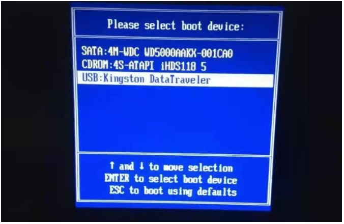 6、開機時需要不停地按啟動熱鍵,選擇USB選項,按回車鍵進入PE系統,即可開始自動安裝系統。