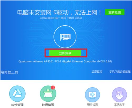 1、如果方法一不能解決的話,可能是網卡驅動的問題。借助u盤工具拷貝驅動精靈萬能網卡版安裝包到電腦上安裝打開,鼠標點擊“馬上檢驗”按鍵。