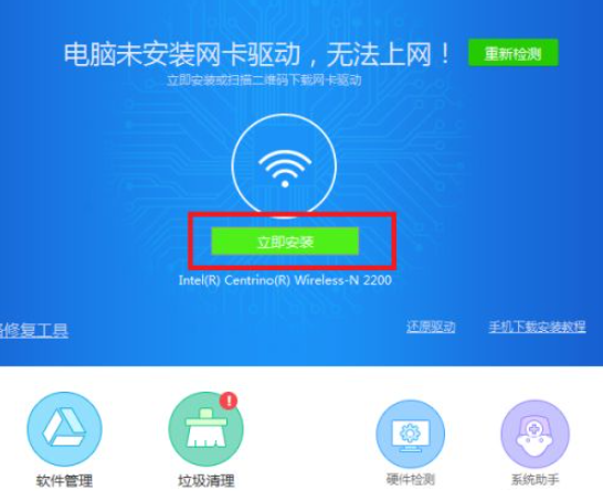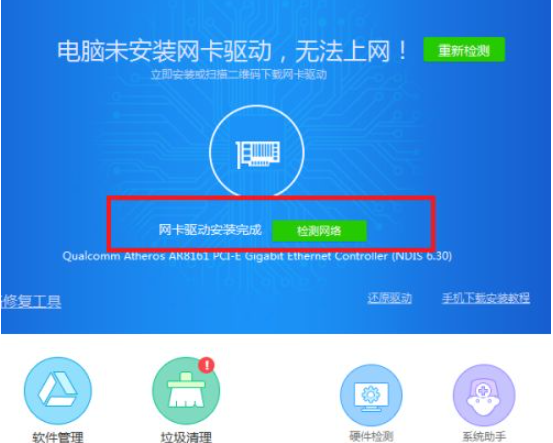 4、網絡驅動程序軟件安裝好后,鼠標點擊“檢驗網絡”,查看周邊是不是有可以用的網絡。