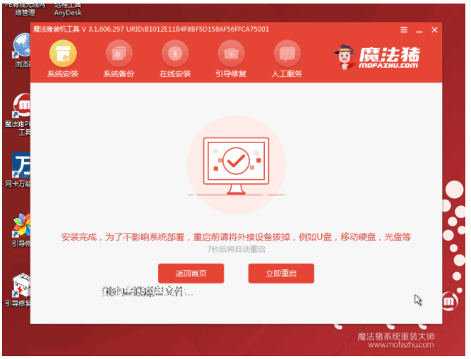 6、待系統安裝完畢后,再次點擊立即重啟電腦。
