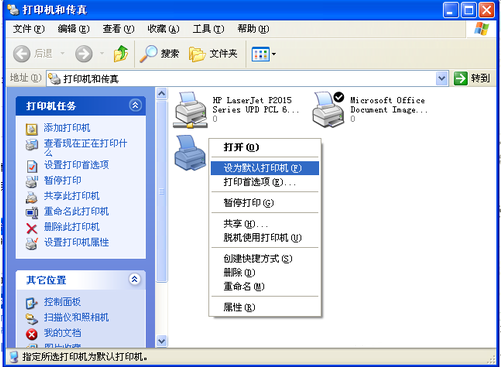 2、鼠標右鍵該打印機,將其設置為默認打印機。