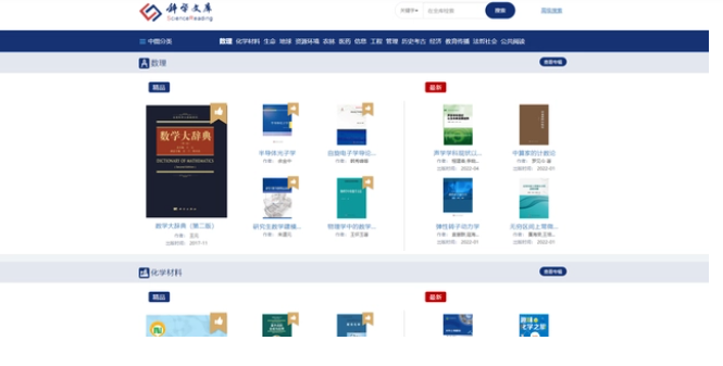 一個科學出版社旗下的圖書網站,它里面包含了多個學科的電子教材,有數理類、歷史、地理、生物科學、醫藥、農業、信息、航空、航天等。
