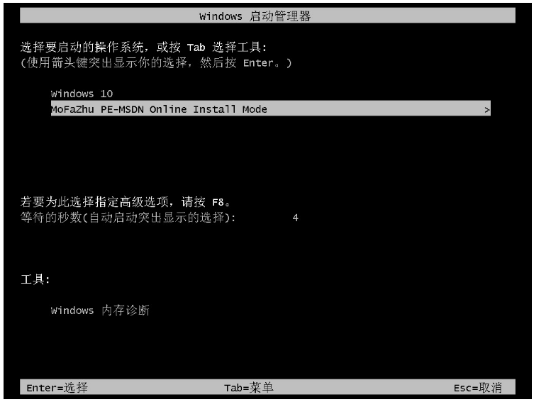 4.重啟電腦進入到啟動項界面,選擇第二個選項按回車鍵進入系統。