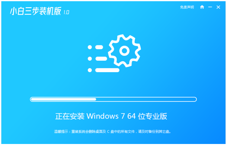 6、進入pe系統之后,小白裝機工具此時將會開始自動安裝win7系統的。