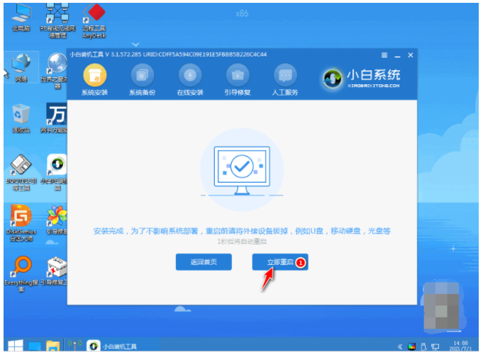 3、等待軟件自行下載鏡像后重啟進入pe系統;