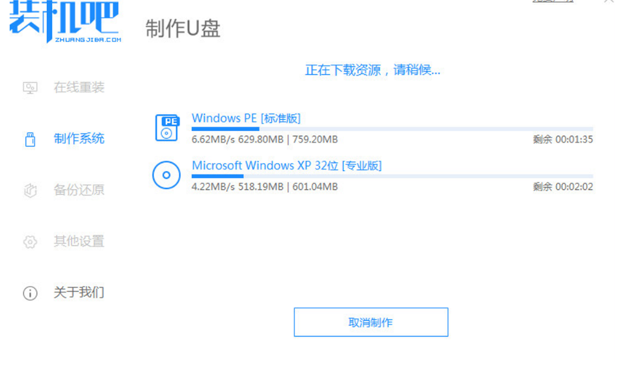 3、在軟件寫入U盤過程中,我們的U盤制作成功之后,點擊取消就可以了。