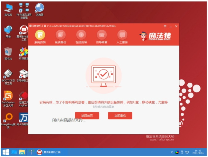 5、裝機軟件將會自動開始安裝,提示完成后立即重啟。