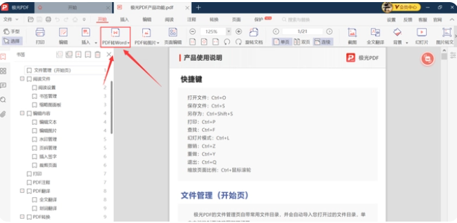 1、自行在電腦瀏覽器上搜索安裝【極光PDF】轉換器,然后打開極光PDF,頂部攔找到【PDF轉word】功能進入。
