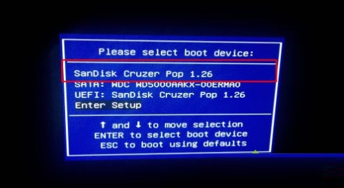 3、在需要重裝系統的電腦上插入U盤,重啟電腦后不停按F12、F11、Esc等快捷鍵選擇U盤選項,回車,其他機型參照上述“U盤啟動設置”教程;