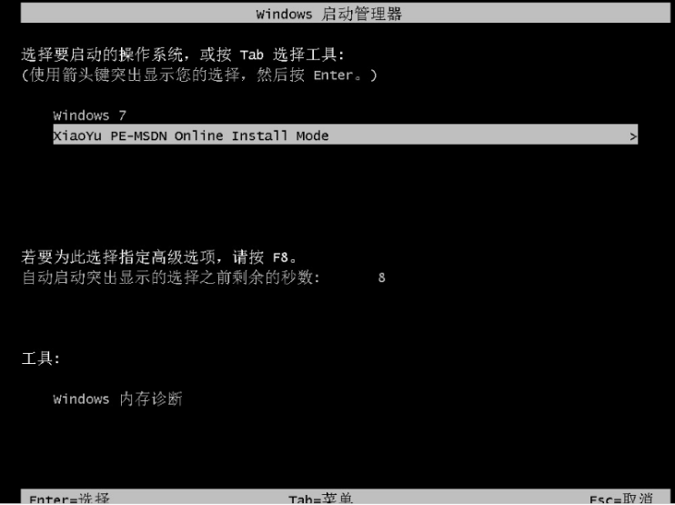 5、選擇第二項,按回車鍵進入到xiaoyu-pe系統界面。