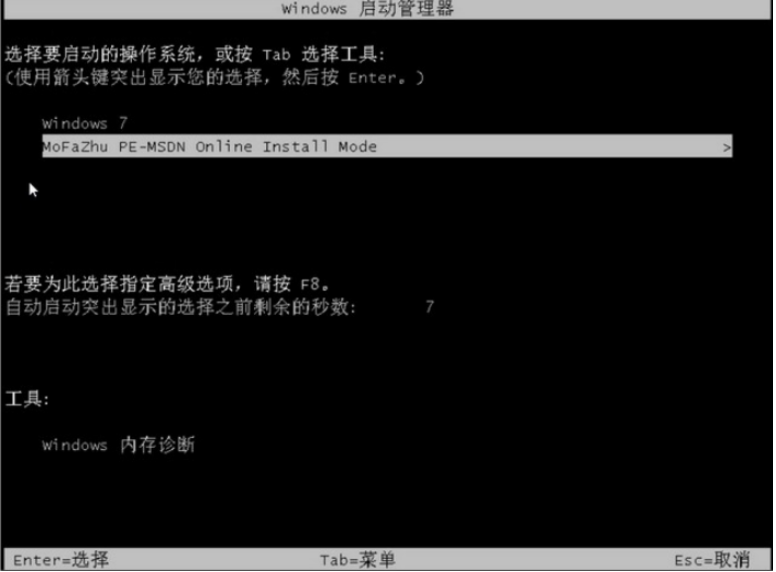 3、進入到開機選項界面,自動進入mofazhu-pe系統。