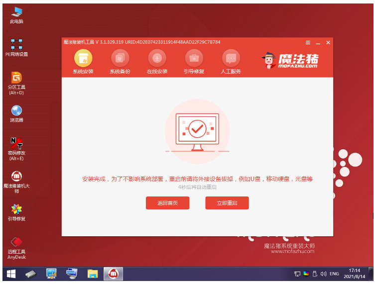 6、系統安裝完成后,點擊立即重啟電腦。