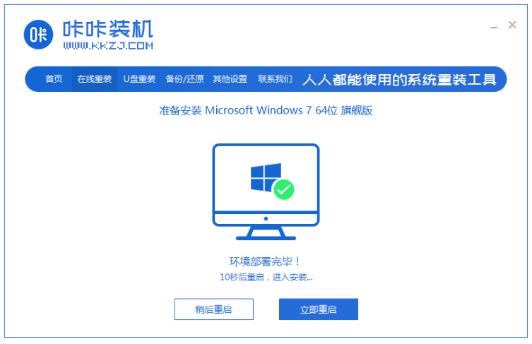 3、裝機軟件此時將會自動進行環境部署,點擊立即重啟電腦。