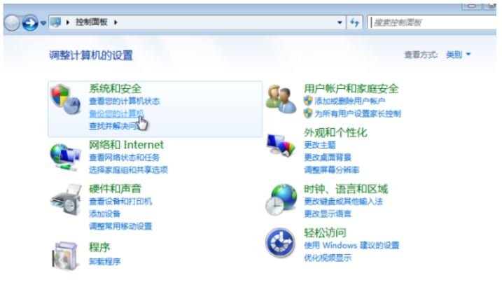 2、在打開如圖界面里點擊-系統和安全-下方的-備份您的計算機。
