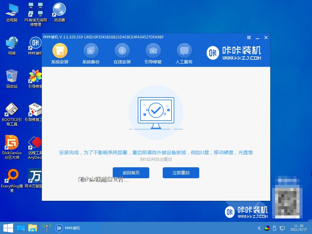 4、然后軟件便自動部署還原,完成后直接單擊立即重啟。