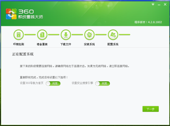 5、出現以下界面時直接點擊下一步,系統重裝完成。