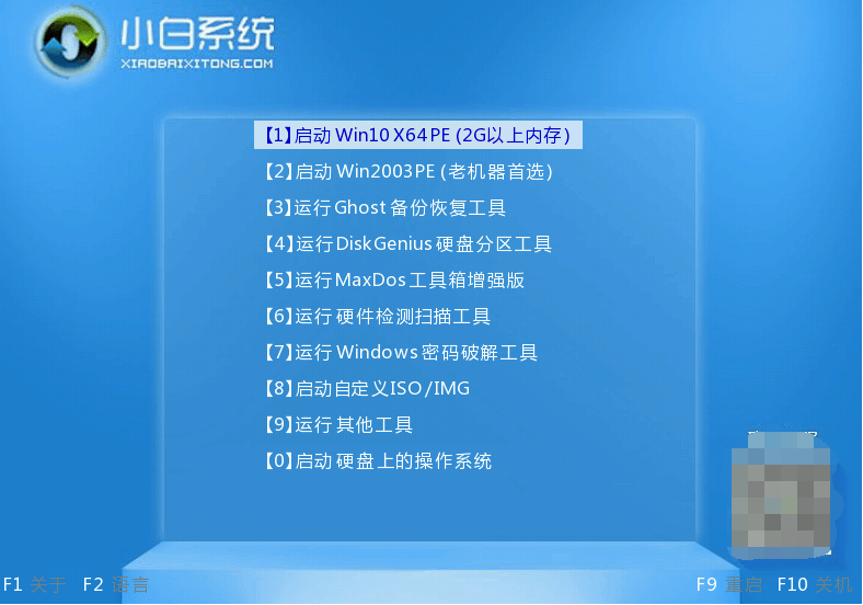 4、插入u盤啟動盤進需要安裝的電腦中,電腦重啟并不斷按啟動熱鍵進啟動界面,選擇u盤啟動項進入到第一項pe系統。