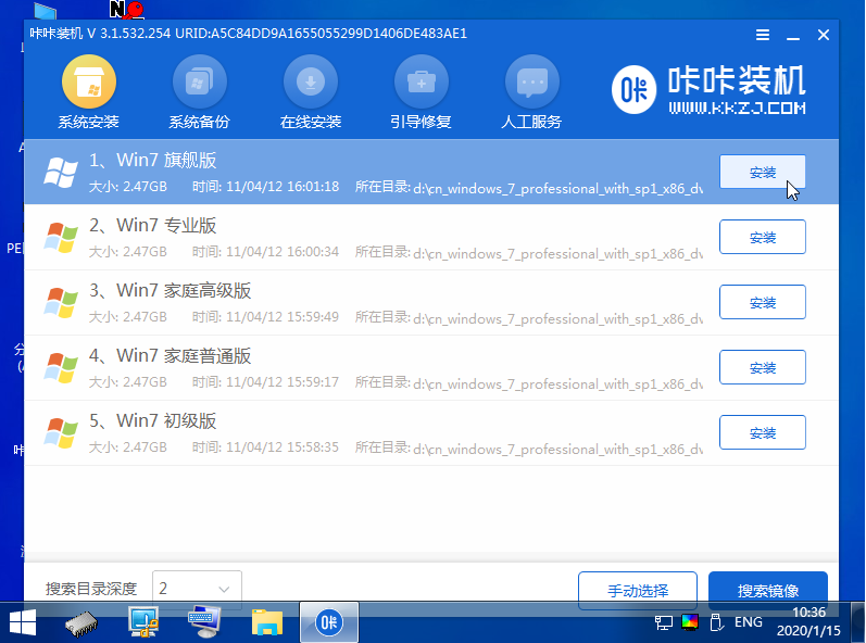 5、打開咔咔裝機工具,選擇系統安裝到系統盤c盤。