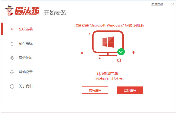 3、耐心等待下載系統以及環境部署,擊立即重啟。