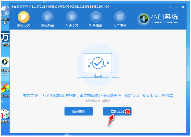 7、電腦提示系統安裝完成后,立即重啟。