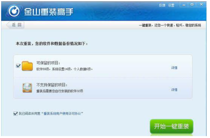 答:其實金山重裝高手只能夠安裝同樣的系統的,下面小編我給大家帶來金山重裝高手重裝系統步驟教程,一起來看看吧。