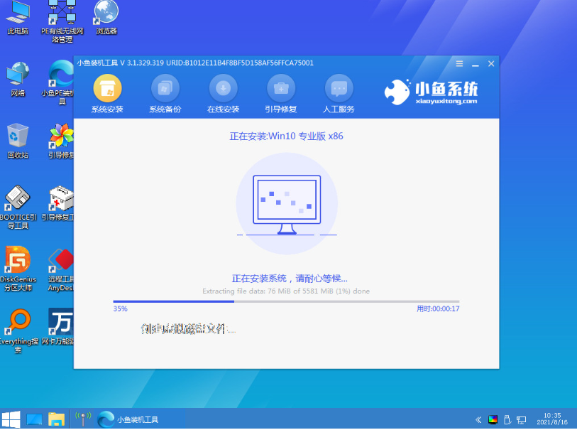 4、接下來軟件會自動重啟進入pe內,自行打開小魚裝機工具安裝win10系統,我們要做的就只需等待軟件安裝重啟進入新系統桌面即可。