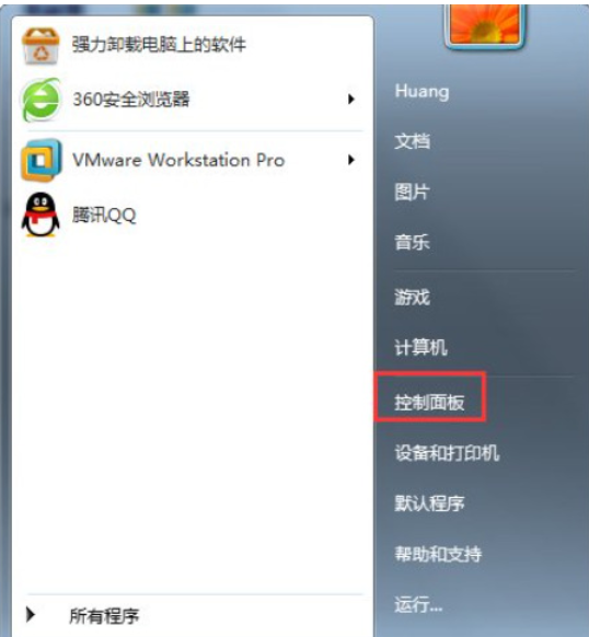 1、點擊開始菜單欄,選擇“控制面板”。