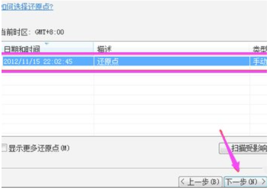 5、還原點一般默認都是出廠設置,點擊“下一步”。