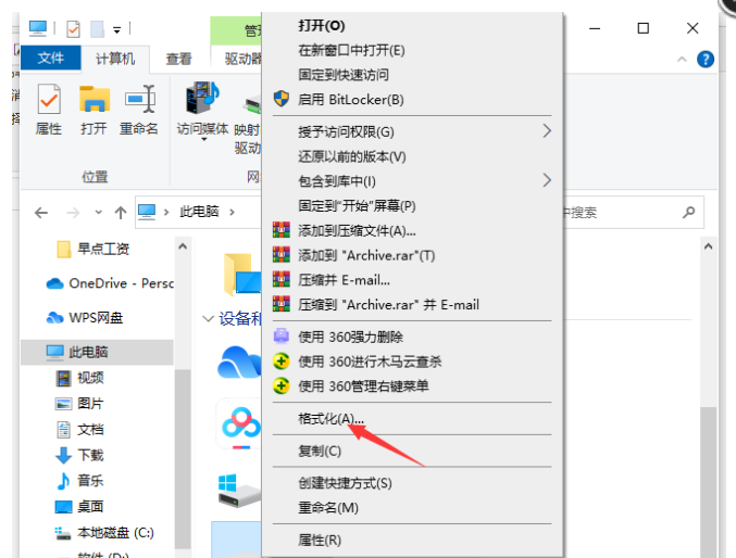 2、右鍵點擊U盤,選擇“格式化”選項。