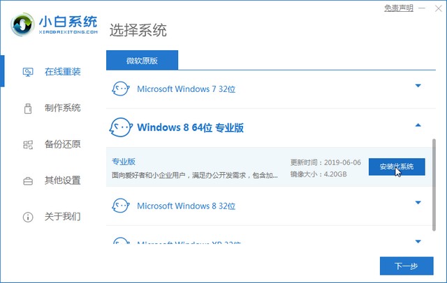 windows8系統自從推出后,只有部分網友使用過。大部分都是都是從win7過渡到win10,也不是說win8不好。想比以前的windows系統,win8的變化太大,很多老用戶都不習慣。習慣是很可怕的東西,也往往是懶人的借口。下面就讓小編使用小白一鍵重裝系統來完成win8系統的安裝。