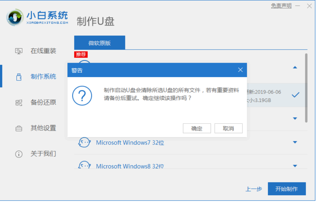 1、首先我們需要打開桌面上的小白一鍵重裝系統軟件,等待軟件檢測完成后進入主界面,我們點擊制作系統,選擇開始制作。