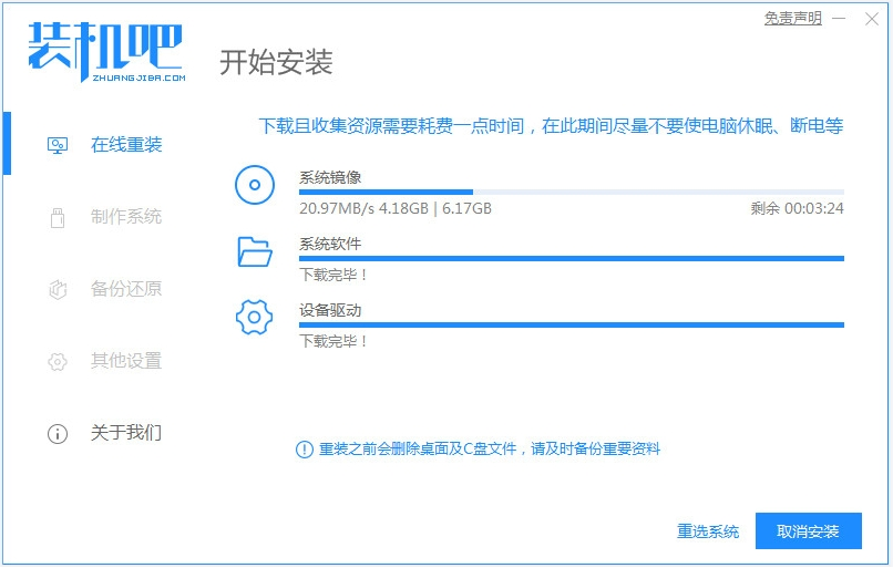 2、等待軟件自動下載系統鏡像和驅動文件等。