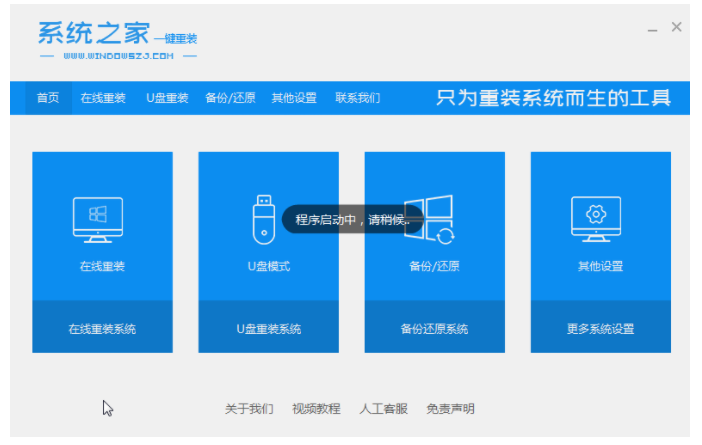 1、在官網上下載并打開系統之家軟件,選擇“在線重新安裝系統”。