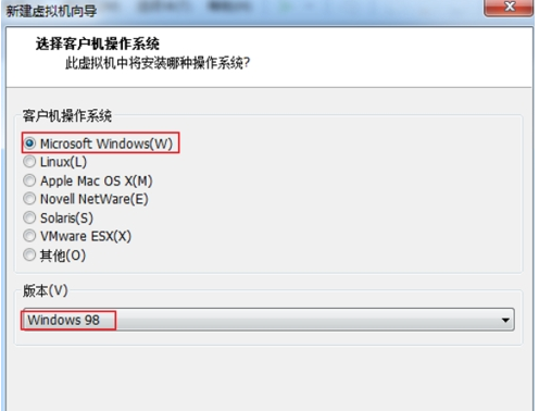 2.然后我們打開vmware軟件,單擊創建新的虛擬機其中客戶機操作系統選擇Windows 98 其他老樣子。