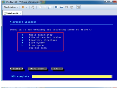 15.我們再次打開開啟此虛擬機; 安裝Win98 繼續中ing 耐心等待。點擊 ;確定; --> 自定義輸入 ;紅框內容; 后點擊 ;關閉即可。