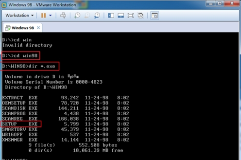 9.我們輸入: ;setup; --> 按鍵 ;回車; win98 安裝程序! --> 按鍵 ;回車即可。