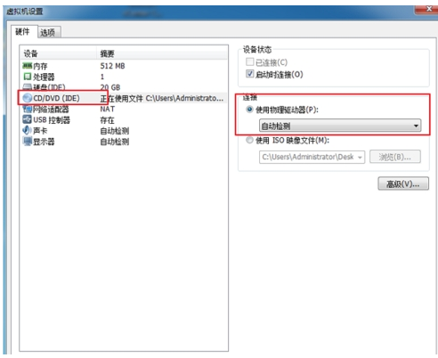 14.單擊取消; (不需要啟動盤),等待到需要重啟電腦的時候! 關閉虛擬機系統。把我們加載的DOS.ISO 去掉, 選擇 ;使用物理驅動器(P):; --> 點擊 確定。
