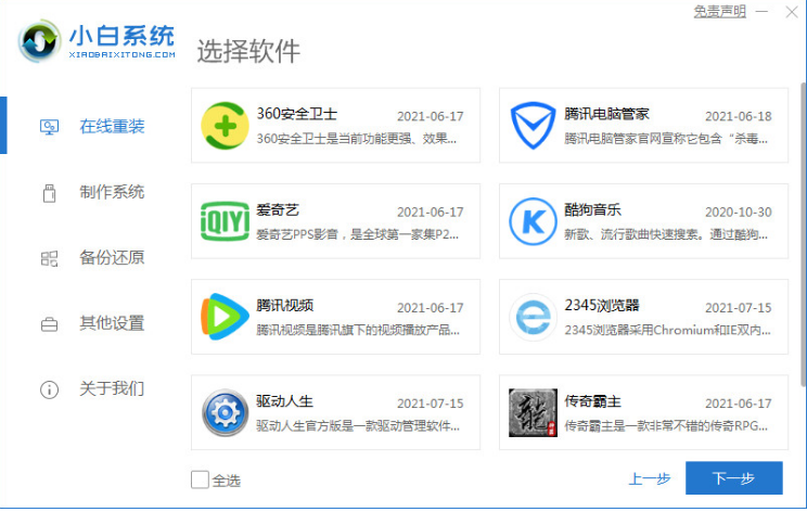 1、首先我們下載安裝小白一鍵重裝系統,選擇需要安裝的版本,點擊下一步。