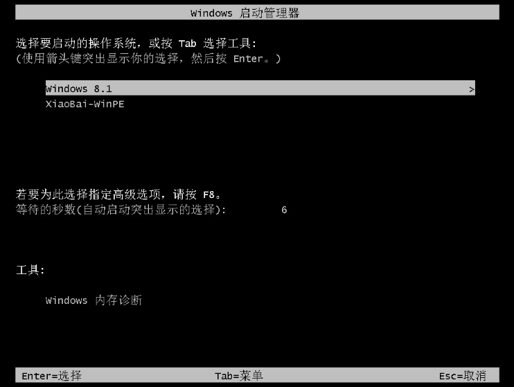 6、重啟電腦后再次進入啟動管理頁面,選擇第一項windows8按回車。