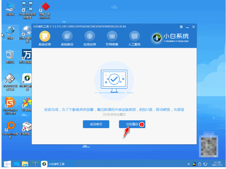 5、耐心等待系統自動安裝結束后,請點擊立即重啟。