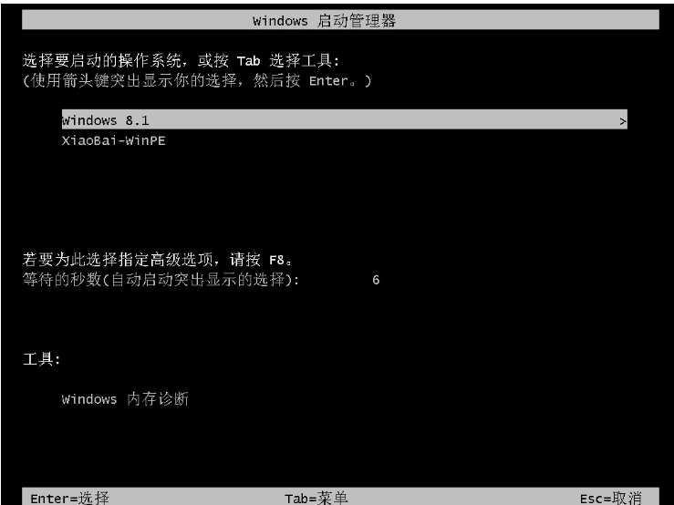 4、在等待系統自動安裝結束后,單擊立即重啟,再次進入啟動管理界面,我們選擇第一項,windows8,回車。